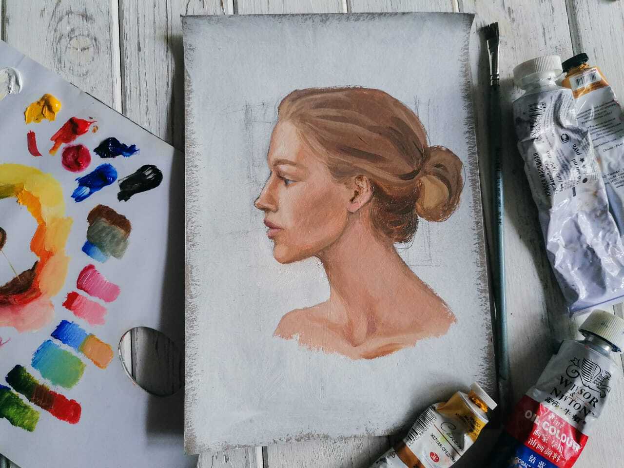 Мое путешествие в живопись началось этой весной. С Любой я писала морские пейзажи. Интуитивно двигаясь за мастером, я, как мне казалось, научилась писать пейзажи. И даже сейчас с понравившегося фото сделаю это с любовью. Но пейзажи - это широкие мазки, буйство красок и оттенков. А тут портрет?! Заставить себя совершать мелкие, точные движения кистью, а ещё схемы с расчетами частей... это стоило мне огромных усилий! Поэтому портрет для меня, - это в первую очередь, работа над собой. Это не только уроки живописи, но и уроки самой Жизни. Я счастлива, что у меня теперь получаются прекрасные портреты !